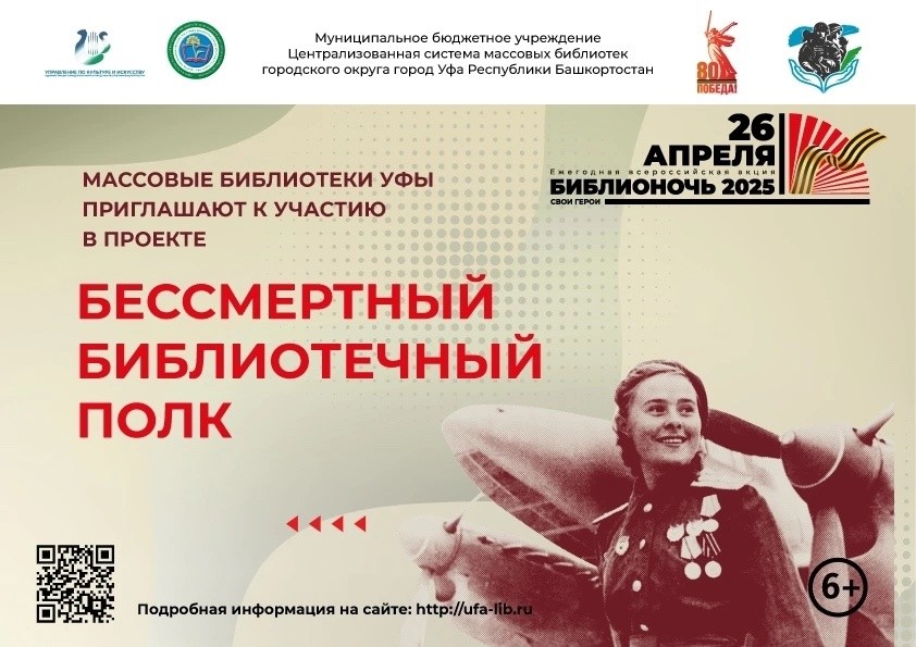 Предлагаем жителям Уфы в этот день стать частью Всероссийского онлайн-марафона «Бессмертный библиотечный полк», который объединяет поколения и сохраняет память о тех, кто сражался и сражается за наше будущее!