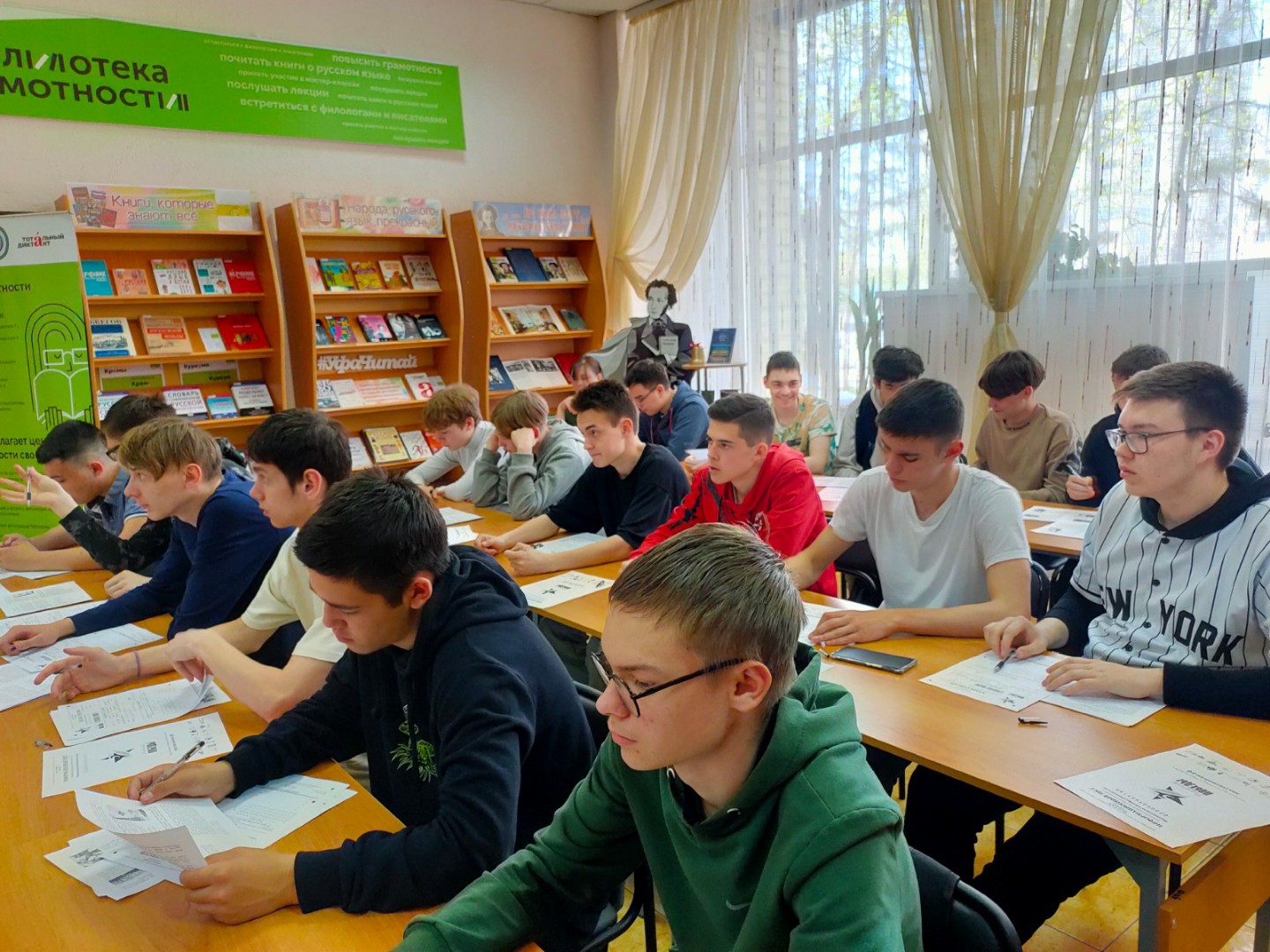 Централизованная система массовых библиотек г. Уфы присоединилась к акции. Все желающие смогли проверить свои знания по истории Великой Отечественной войны на 7 площадках в разных районах города - в Центральной городской библиотеке, модельных библиотеках №№ 6, 10, 31, 32, 35 и 36. «Диктант Победы» прошел в массовых библиотеках столицы во второй раз.