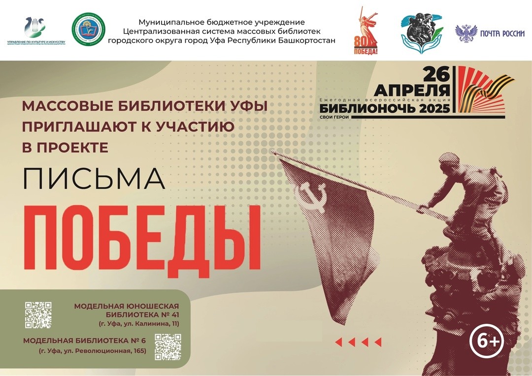 В рамках проекта «Письма Победы» библиотеки города Уфы совместно с «Почтой России» организуют сбор открыток и писем ветеранам Великой Отечественной войны, а также героям, находящимся сейчас на передовой.