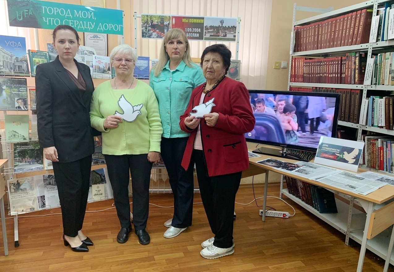 В память о жертвах теракта, в библиотеке №16 был проведен час памяти «Беслан. Трагедия, которую никто не забудет…». Гостями мероприятия стали ветераны труда Октябрьского, Орджоникидзевского и Ленинского районов города Уфы.