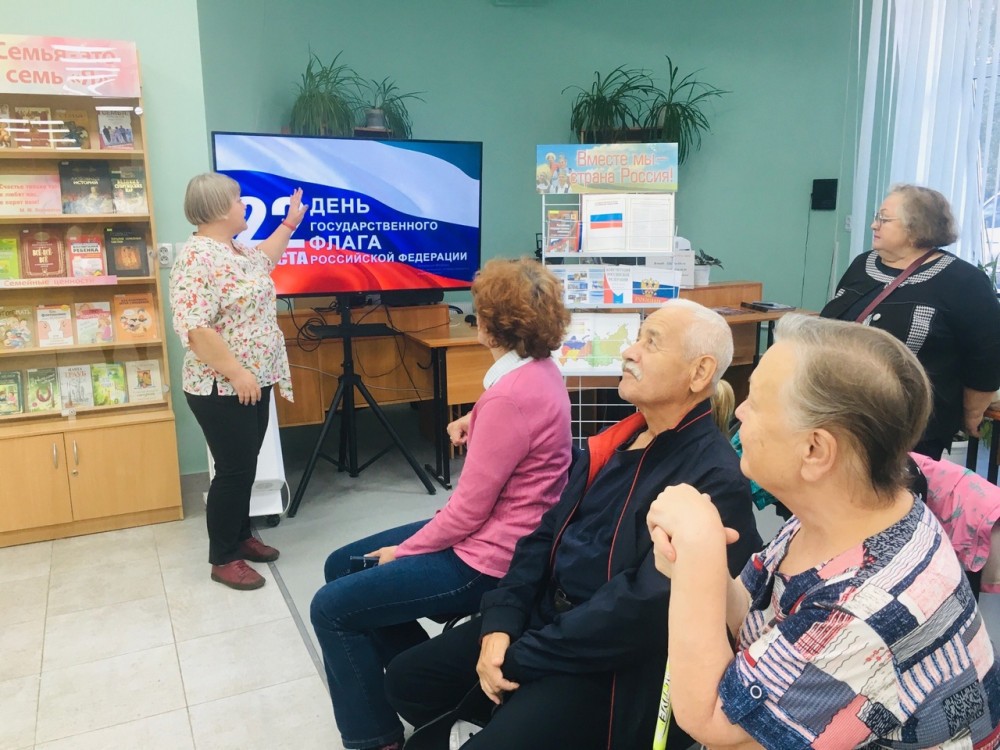 Патриотические часы «Флаг России – гордость страны» в библиотеке №16, «Россия в символах» в библиотеках № 25 и 35, «Флаг державы – символ славы» в модельной библиотеке № 31, «Флаг моего государства» в модельной библиотеке № 32, в ходе которых подробно осветили историю возникновения и изменений флага. Рассказали интересные факты о флаге России. О том, что на Руси знамена назывались стягами, так как под них стягивалась перед походом дружина. Полотна были треугольной формы, на них изображались сцены из Священного Писания и образы святых. А также о том, что у современного государственного флага России есть свой ГОСТ, установленный в 1998 году. Именно он определяет оттенки, которые нужно использовать для триколора.