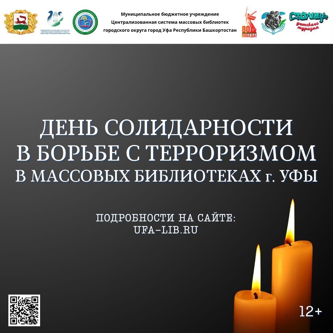 Массовые библиотеки города Уфы подготовили серию мероприятий в память о жертвах бесчеловечных терактов и тех героях, кто отдал жизнь ради спасения мирных жителей.
