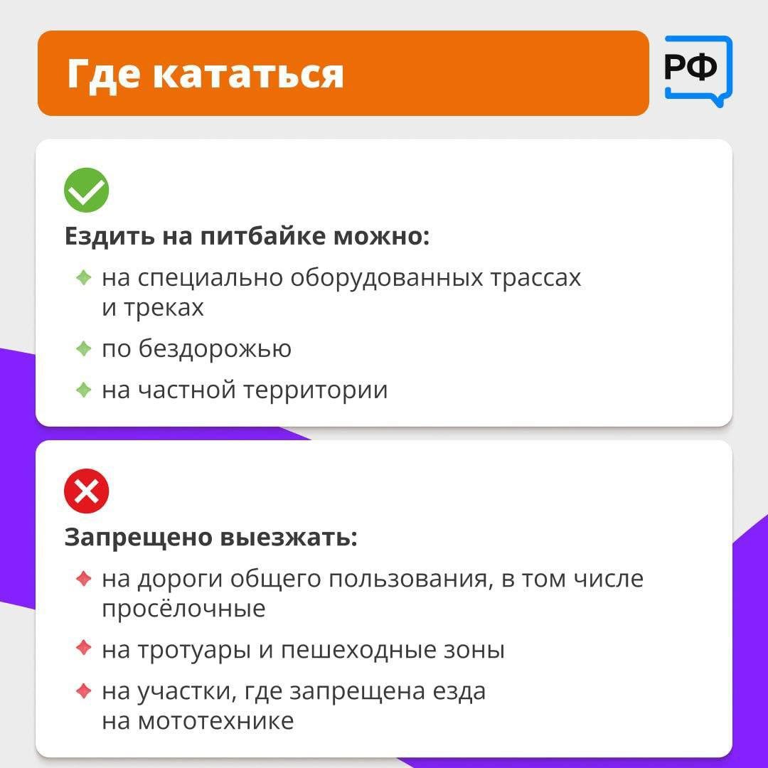 Какие правила существуют для питбайков и почему это не игрушка для подростков - в карточках