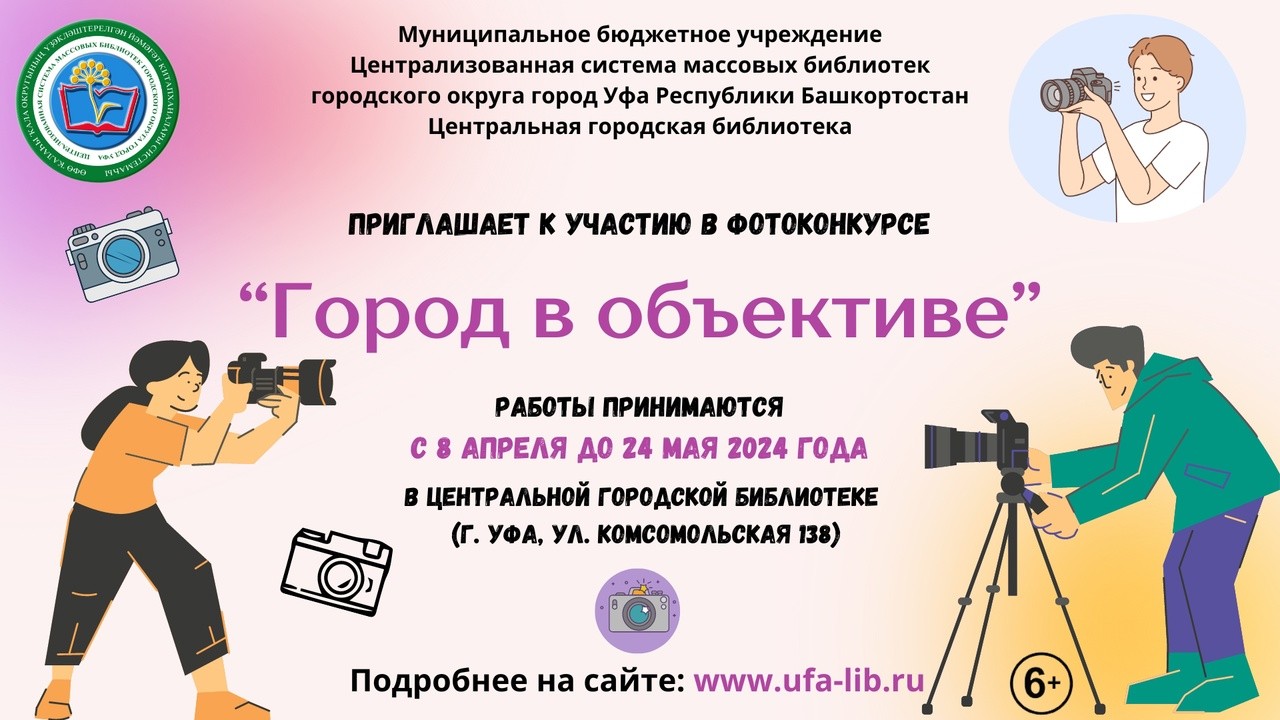 С 08 апреля по 12 июня 2024 года в Уфе проходит фотоконкурс «Город в объективе». В Фотоконкурсе могут принять участие все желающие от 6 лет и старше.