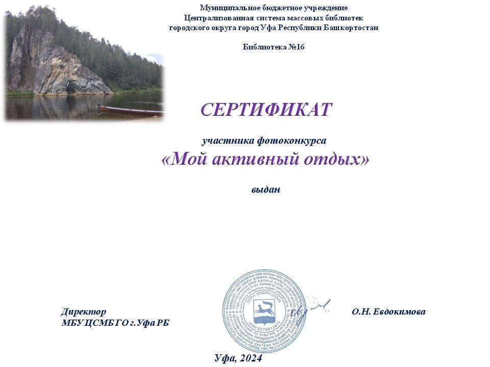 Все участники станут обладателями электронного сертификата, доступного для скачивания на официальном сайте Библиотеки № 16 МБУ ЦСМБ ГО г. Уфа РБ.