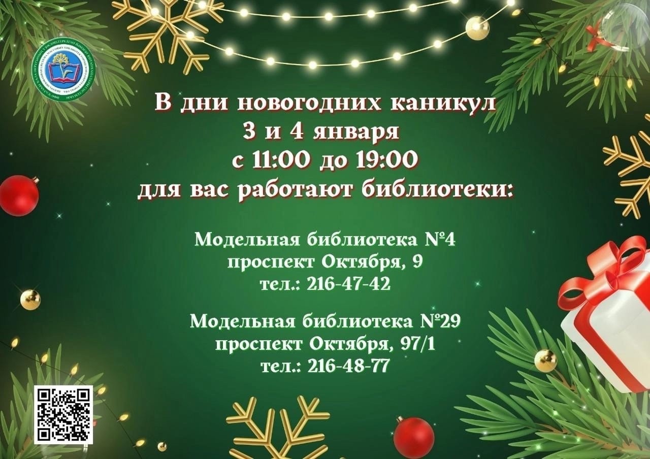 Уважаемые читатели!Поздравляем вас с Новым годом!Обращаем ваше внимание:с 29 декабря по 8 января выходные днис 9 января - библиотека работает по обычному графику