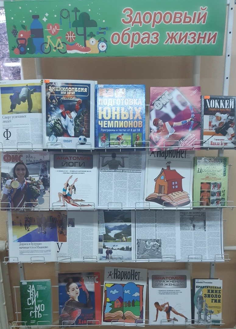 К мероприятию была оформлена книжная выставка «Здоровый образ жизни», на которой были представлены книги и периодические издания о спорте, правильном питании, физических упражнениях, закаливании.