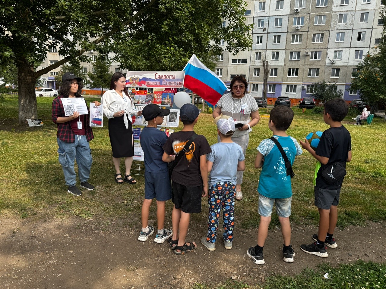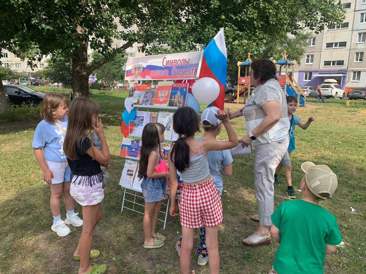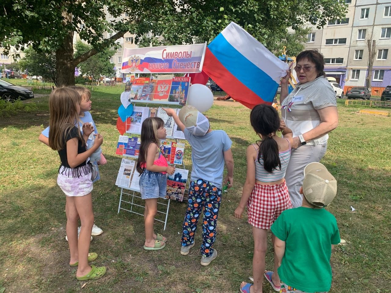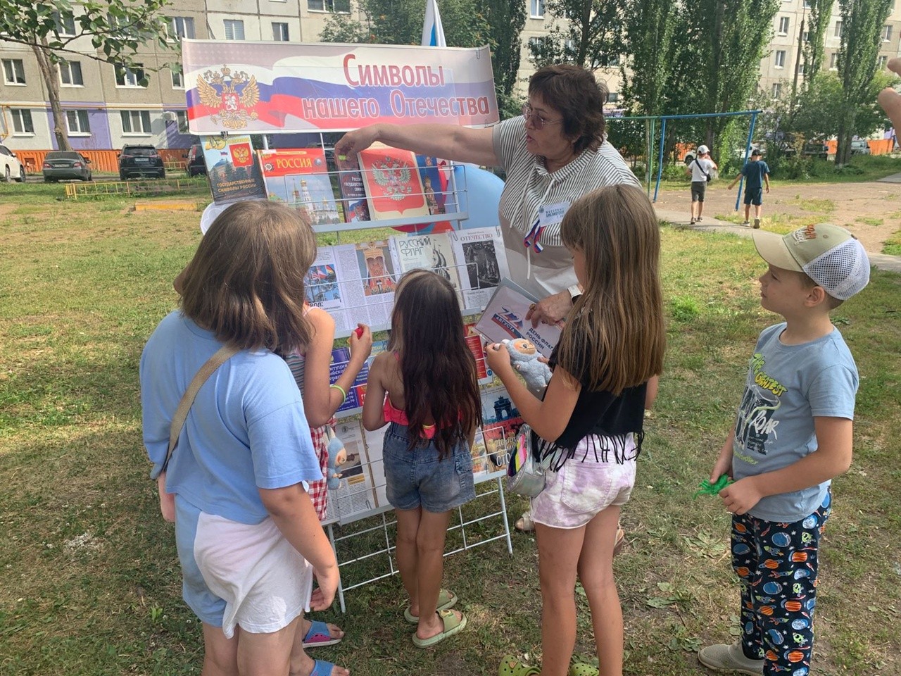 В ходе патриотического мероприятия библиотекари рассказали участникам об истории праздника и создания российского флага, о том, что обозначают цвета российского триколора и в каких случаях поднимается флаг Российской Федерации.