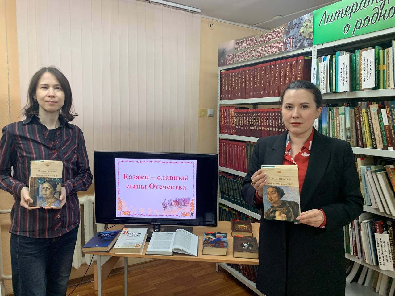 Читатели познакомились с историей казачества и создания казачьих воинских формирований на Руси. Особое внимание было уделено произведениям русских классиков о казаках: М. Шолохов «Тихий Дон», Л. Толстой «Казаки», Н.Гоголь «Тарас Бульба», В.Шишков «Емельян Пугачев», А.Черкасов «Конь рыжий».