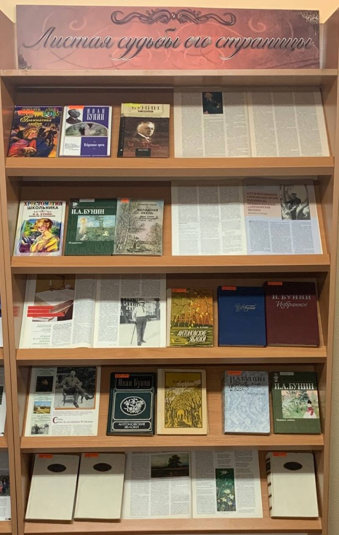 К 155-летию со дня рождения Ивана Алексеевича Бунина в библиотеке №16 был проведен обзор книжной выставки «Любовь и боль его Россия».