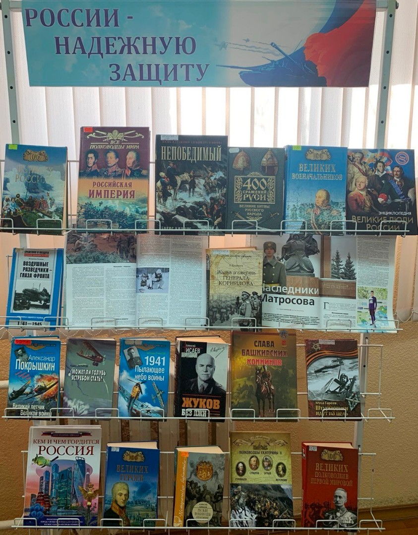 К этой дате в библиотеке № 16 была оформлена книжная выставка «России - надежную защиту», по которой был проведен обзор.