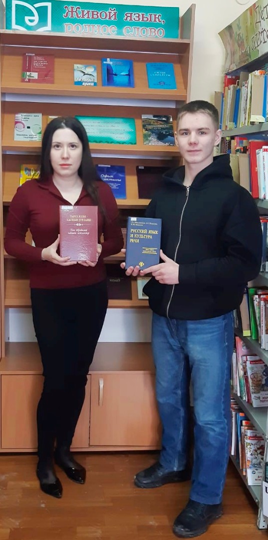 К этой дате библиотека №16 подготовила книжную выставку «Живой язык, родное слово», по которой был проведен обзор.