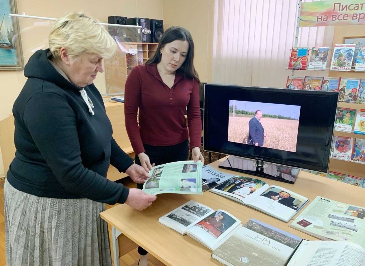Библиотекарь рассказала о жизни и политической деятельности первого президента Республики Башкортостан М.Г. Рахимова, и провела обзор книг, представленных на выставке.