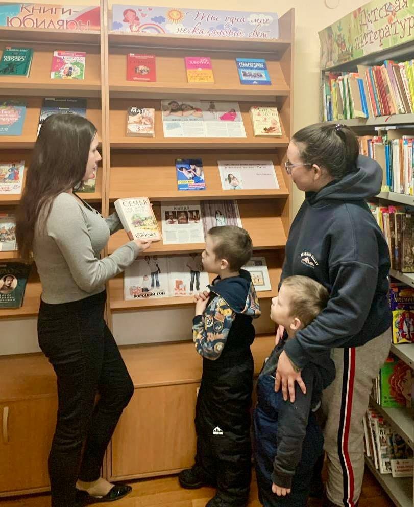 Библиотекари рассказали присутствующим мамам с детьми о том, что из поколения в поколение для каждого человека мама является самым главным человеком в жизни, о ценности и значимости роли матери в семье, и провели обзор книг по воспитанию детей, семейной психологии и материнству.