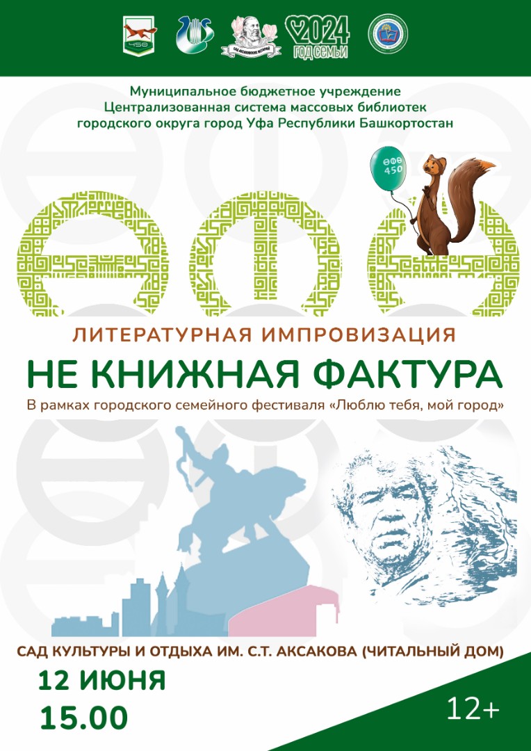 12 июня 2024 года массовые библиотеки Уфы приглашают на масштабное событие для всех поклонников хорошего слога. На первой в России литературной импровизации начинающие и профессиональные уфимские литераторы смогут заявить о себе и выступить перед публикой. Мероприятие пройдет в рамках городского семейного фестиваля «Люблю тебя, мой город».