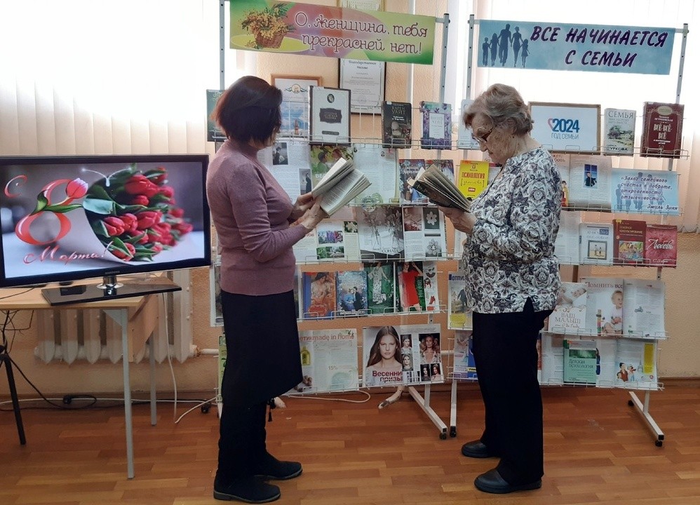 Библиотекари поздравили с праздником всех присутствующих женщин и познакомили с традициями празднования 8 Марта в России.