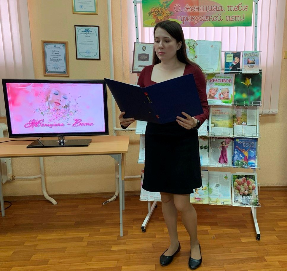 В начале мероприятия, библиотекарь поздравила присутствующих женщин с наступающим праздником и отметила, что 8 Марта – первый весенний праздник, объединяющий в себе все то прекрасное, что заключается для нас в этом времени года – красоту и любовь, доброту и нежность, гордость и признательность – в общем, всё, что олицетворяет образ женщины.