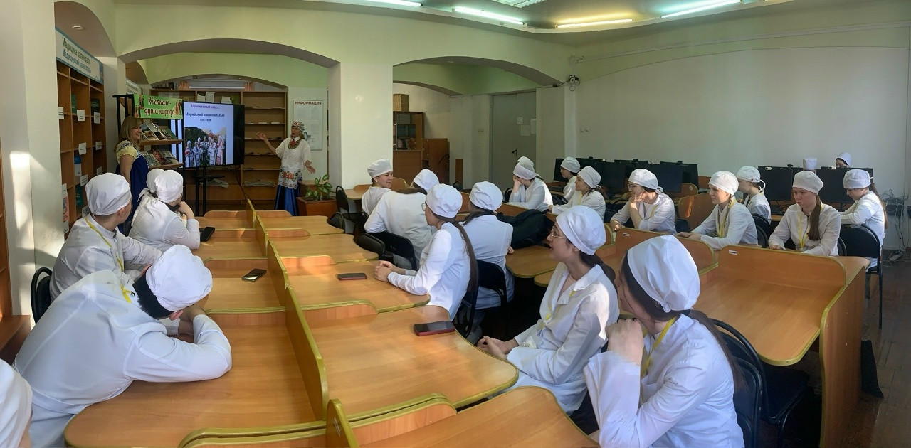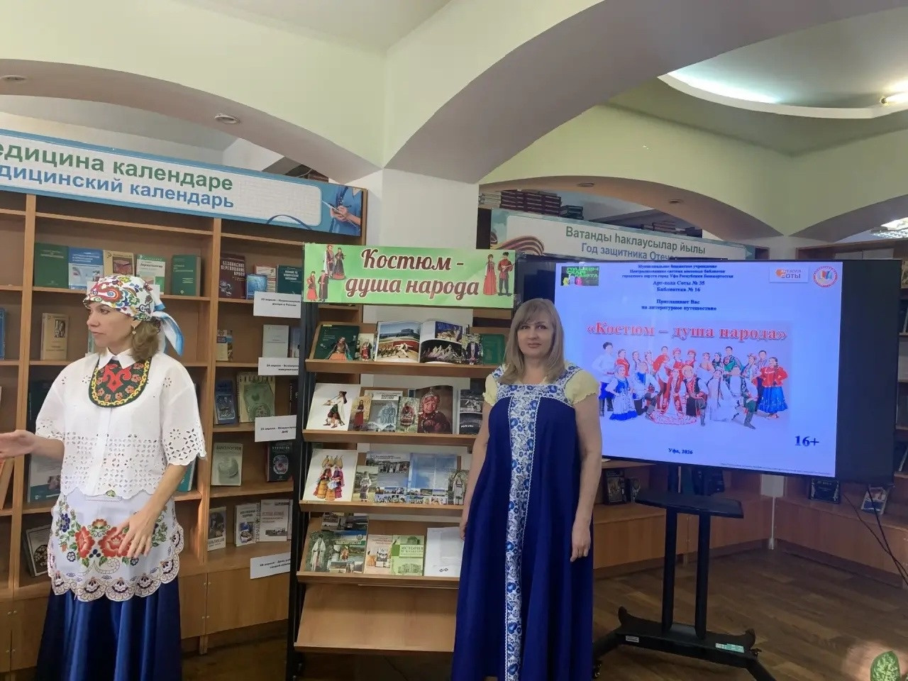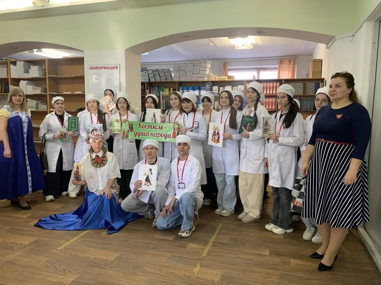 2 апреля 2026 года работники двух массовых библиотек Октябрьского района г.Уфы: библиотеки № 16 и модельной библиотеки № 35 посетили библиотеку ГАПОУ РБ «Уфимский медицинский колледж» с целью встретиться со студентами, обучающимися в нем, проведя литературное путешествие «Костюм – душа народа».