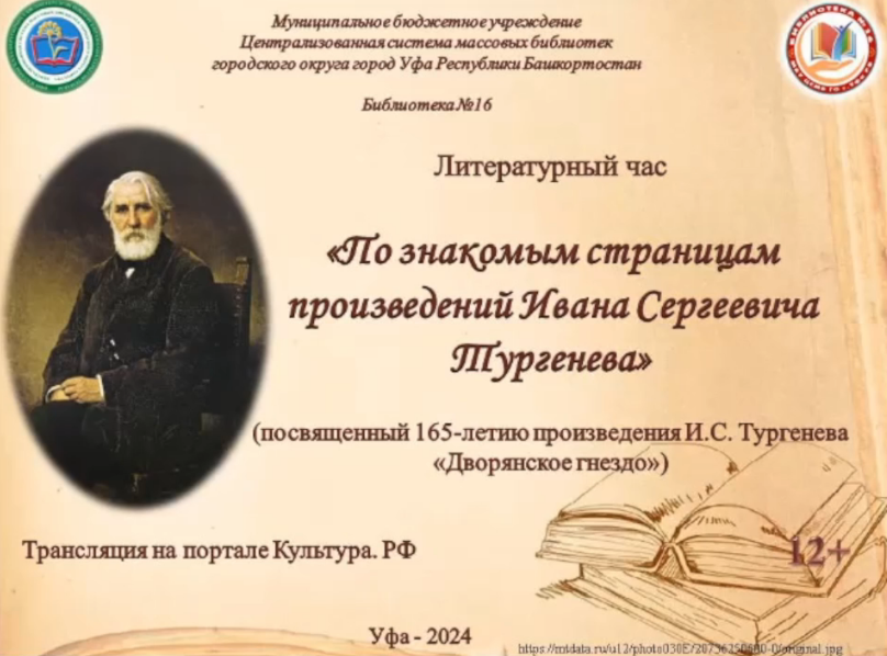165-летию написания произведения «Дворянское гнездо» библиотека посвящает литературный час «По знакомым страницам произведений Ивана Сергеевича Тургенева». Прямая трансляция пройдет на официальном сайте Культура.РФ.
