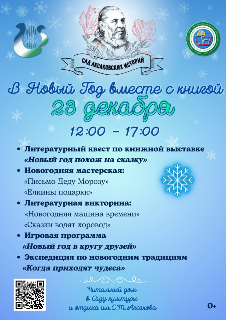 23 и 24 декабря 2023 года, в рамках проекта «Сад Аксаковских историй», массовые библиотеки приглашают уфимцев и гостей города посетить программу «Вместе с книгой в Новый год!».