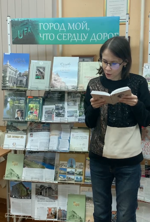 Стихотворение Тамары Ганиевой "Өфөм" на башкирском языке читает ведущий библиотекарь Гарифуллина Зухра Римовна.