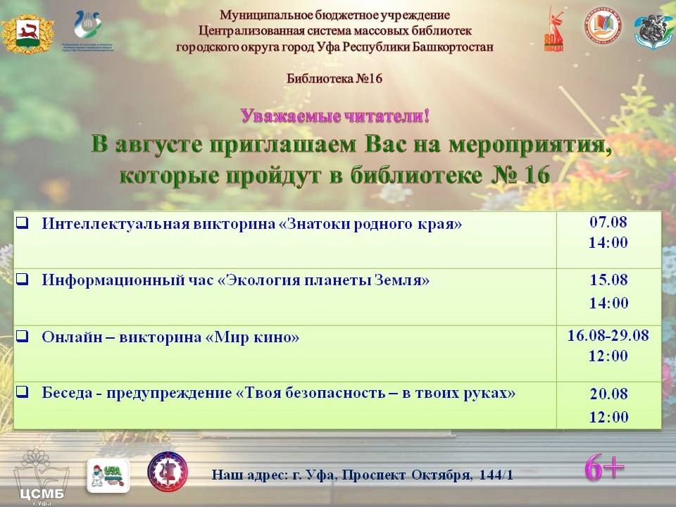Приглашаем вас на мероприятия, которые пройдут в библиотеке №16!