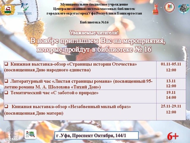 Приглашаем вас на мероприятия, которые пройдут в библиотеке №16!