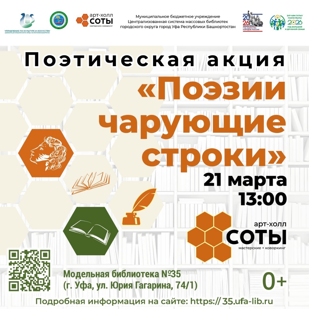 Библиотеки Октябрьского района: модельная библиотека № 35 Арт-холл «Соты», библиотеки № 15 и № 16 приняли участие в приуроченном к этому празднику мероприятии - поэтической акции «Поэзии чарующие строки».