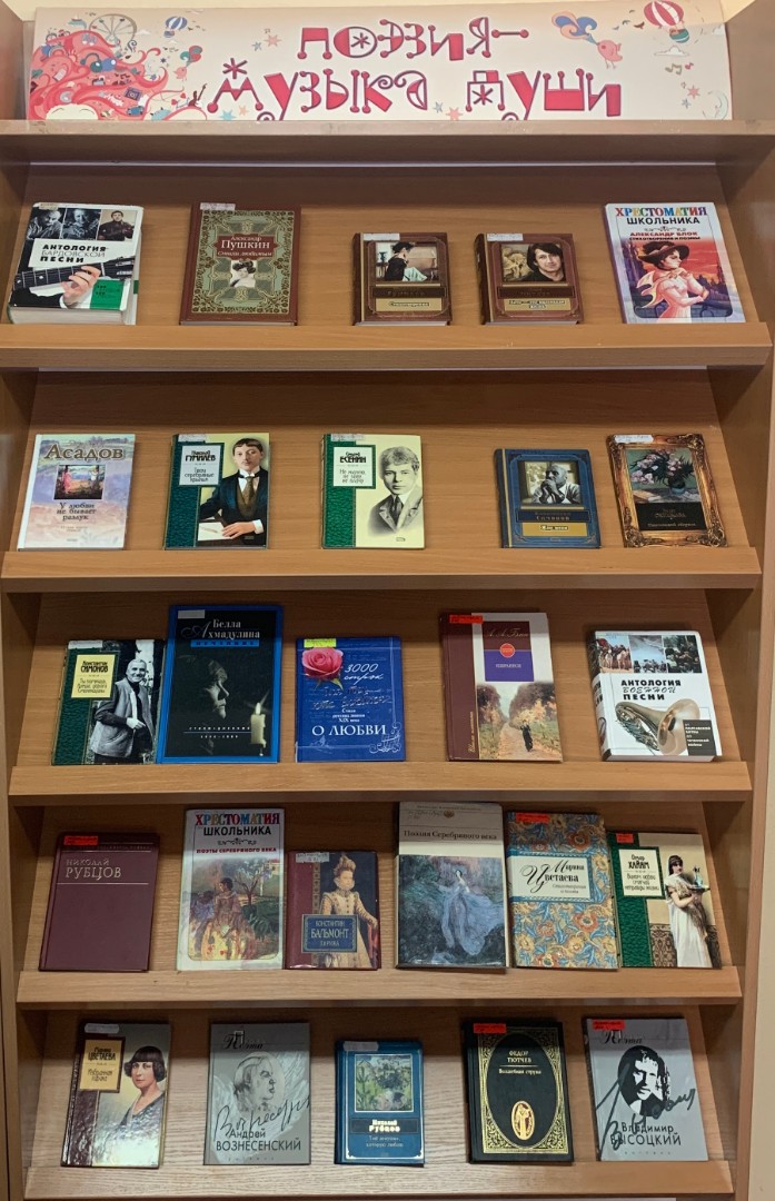 На протяжении мероприятия звучали стихи известных поэтов. К мероприятию была оформлена книжная выставка «Поэзия – музыка души».