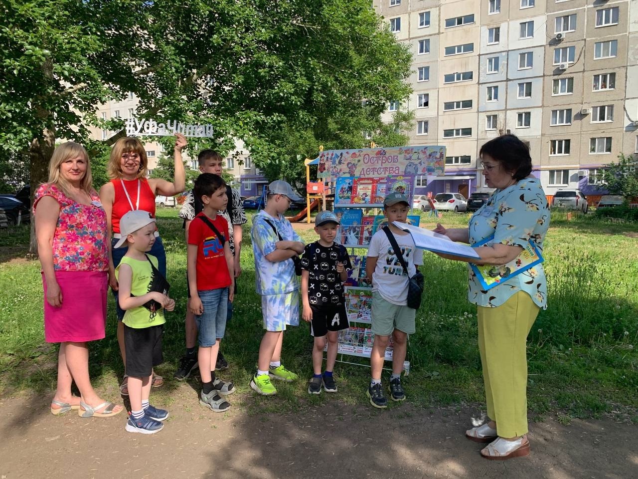 Программа празднично-игрового микса включала проведение викторин и конкурсов на знание произведений для детей русских, башкирских и зарубежных классиков литературы: «О каком герое идёт речь?», «Место жительства книжных героев», «Угадай произведение по его началу».