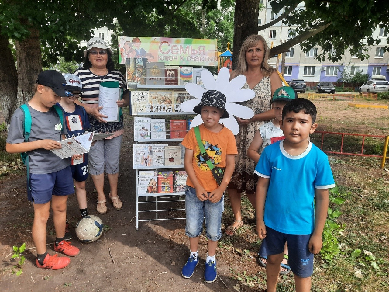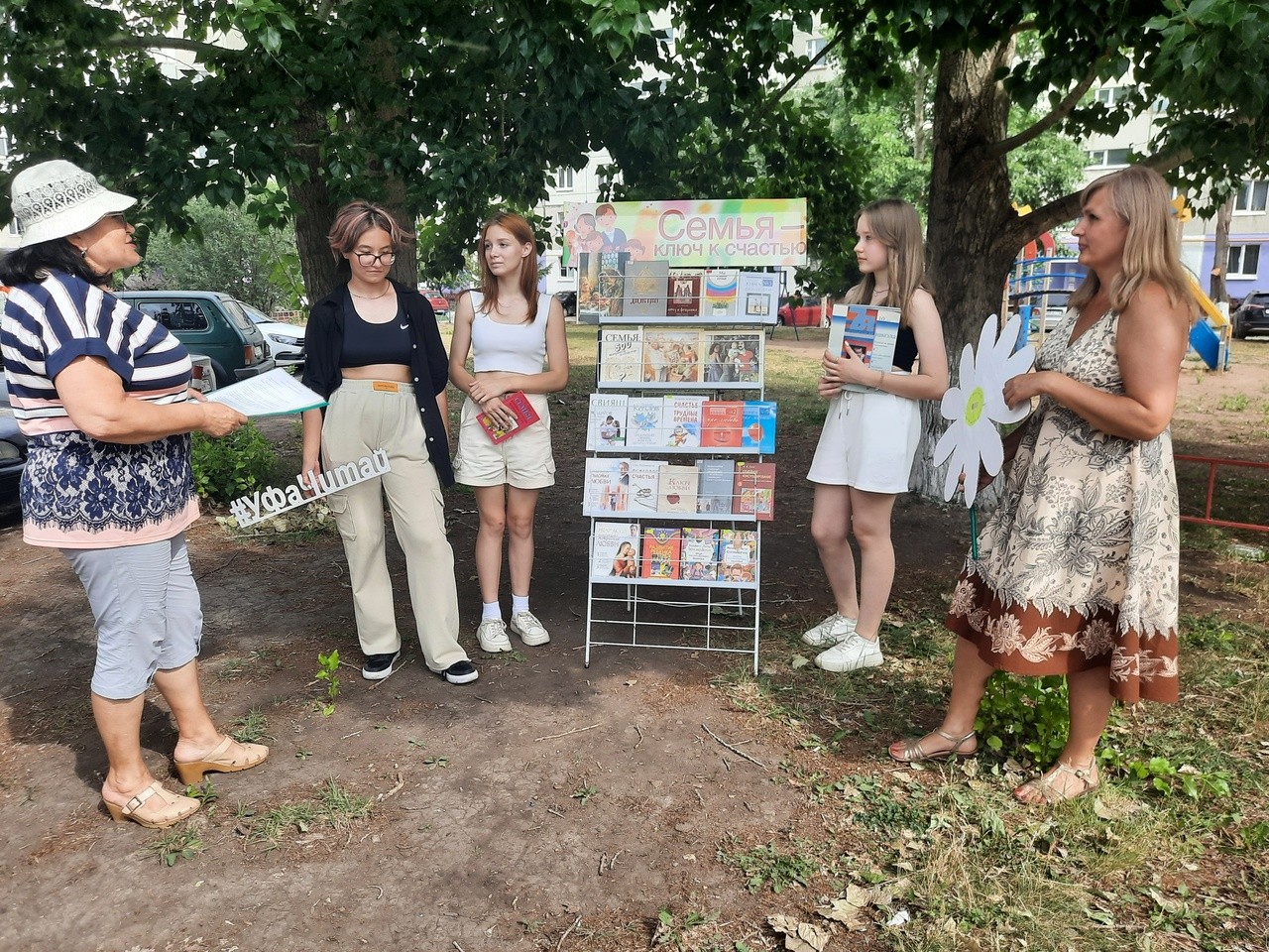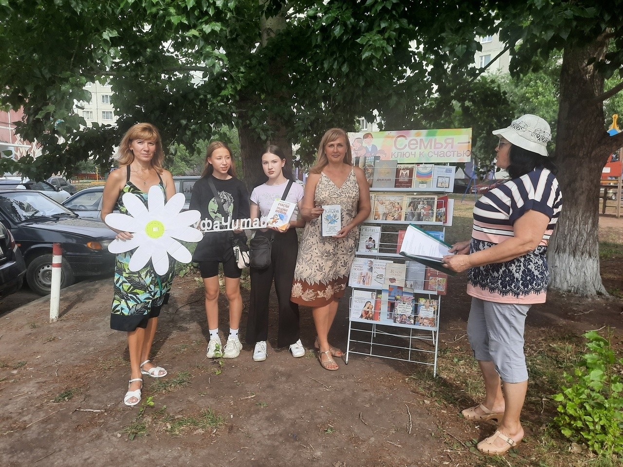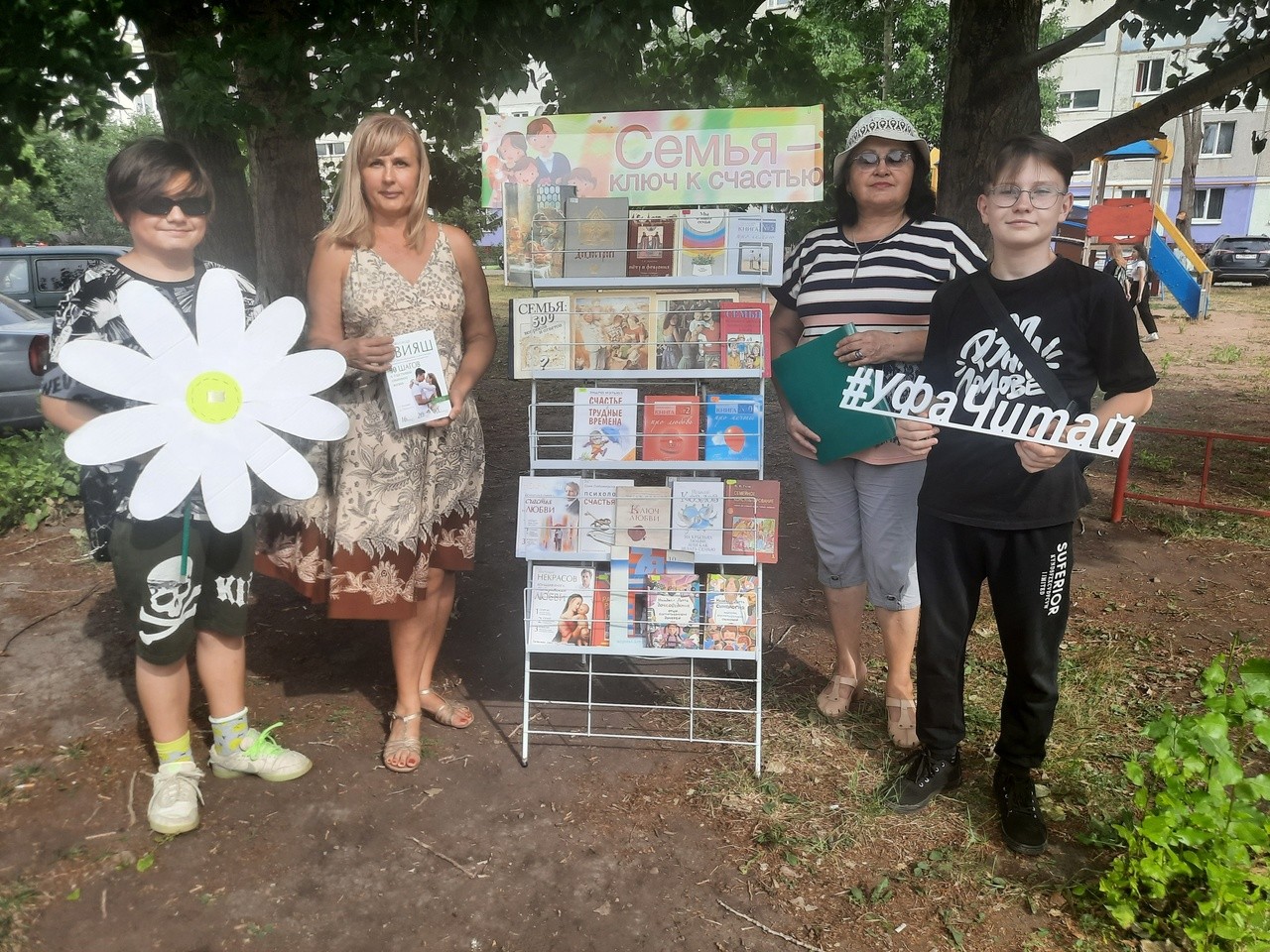 Мероприятие прошло в рамках проекта «Книга под открытым небом» на площадке перед библиотекой № 15 и сочеталось демонстрацией книжной выставки «Семья – ключ к счастью» и музыкальным сопровождением.