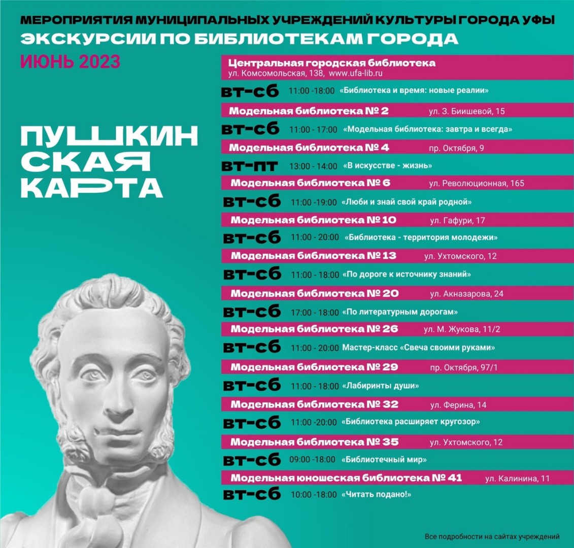 Библиотеки Уфы приглашают вас на экскурсии в рамках проекта «Пушкинская карта»!