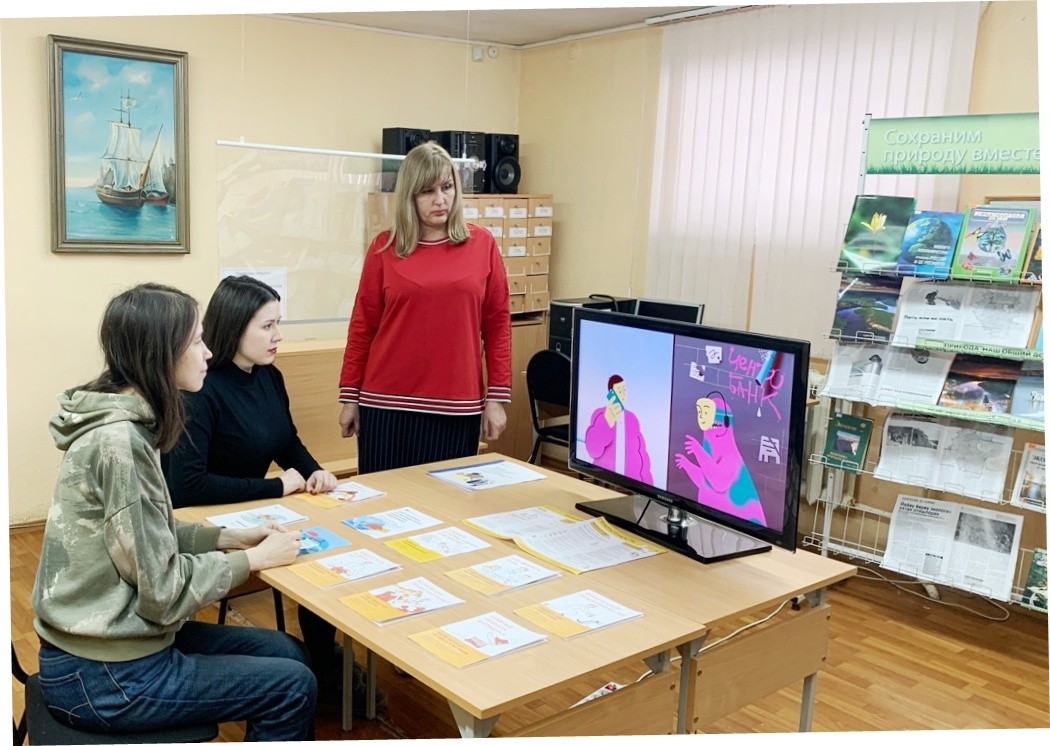В завершение сотрудникам были показаны видеоролики антимошеннической направленности, продемонстрированы листовки и буклеты.