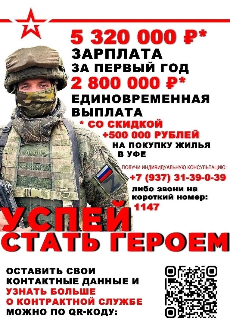 Жители республики, подписавшие контракт с министерством обороны РФ для службы в зоне проведения специальной военной операции, единовременно будут получать 505 тысяч рублей от республики. Администрация Уфы дополнительно выплатит 400 тысяч рублей. Таким образом, с учетом федеральных выплат в 400 тысяч рублей, военнослужащие от Башкирии суммарно единовременно получат 1 млн 305 тысяч рублей.