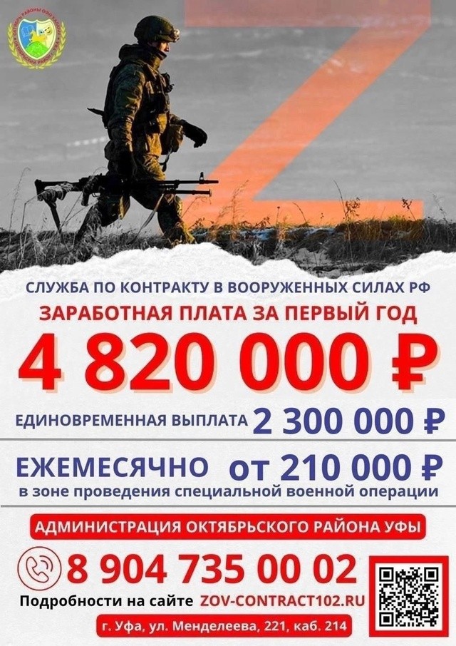 Подать заявку на оформление можно через сайт: zov-contract102.ru/ либо по тел.: +7 (904) 735-00-02. Все желающие могут прийти в военный комиссариат Октябрьского района Уфы по ул. Менделеева, 221 (каб. 214).