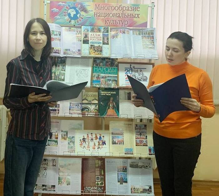 В завершение, библиотекари провели обзор книжной выставки «Многообразие национальных культур», подготовленной в рамках года единства народов России.