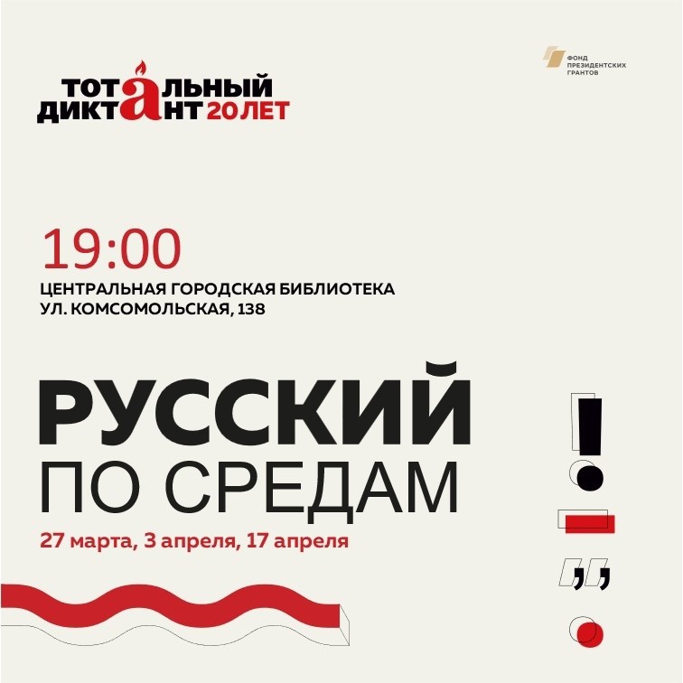 27 марта в Центральной городской библиотеке Уфы стартуют очные подготовительные курсы к Тотальному диктанту «Русский по средам».