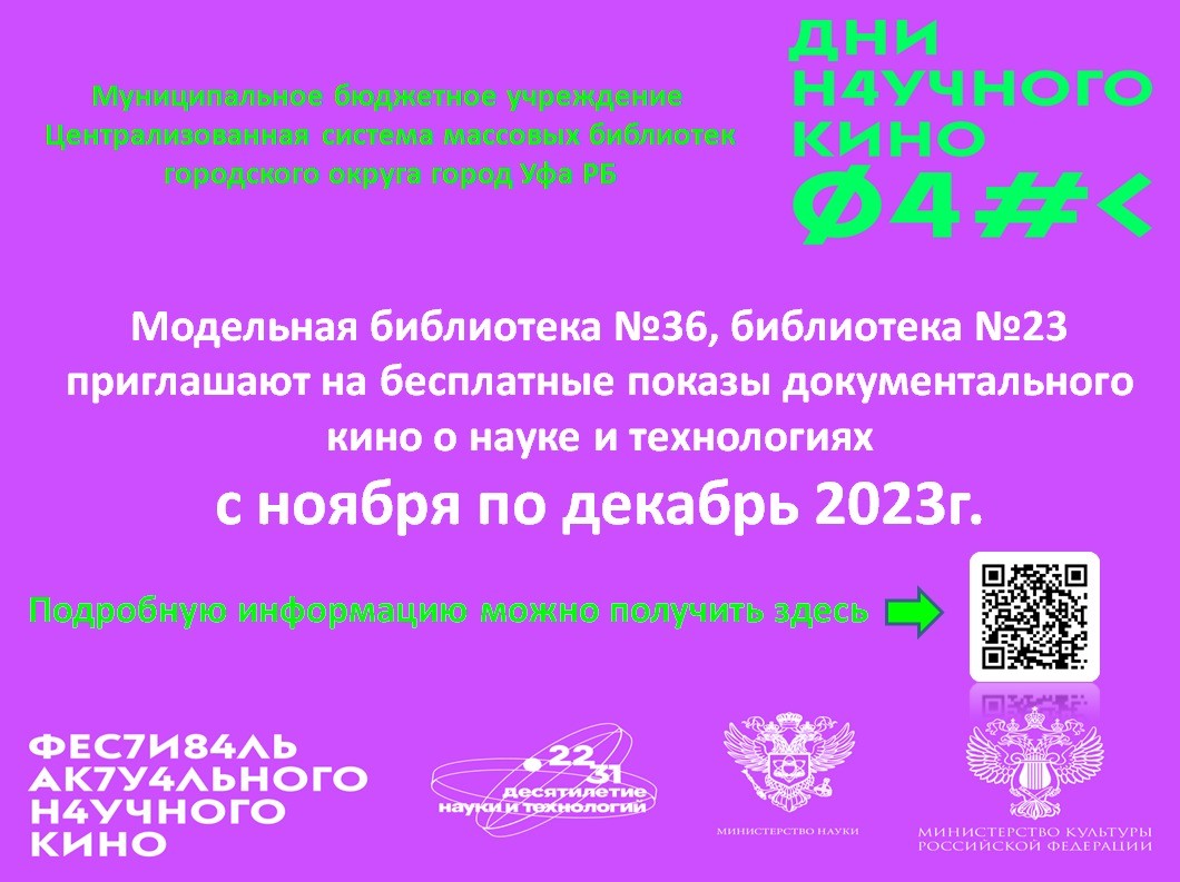 Централизованная система массовых библиотек Уфы присоединяется к просветительскому проекту - Дням научного кино, которые проходят в рамках Фестиваля актуального научного кино (ФАНК).