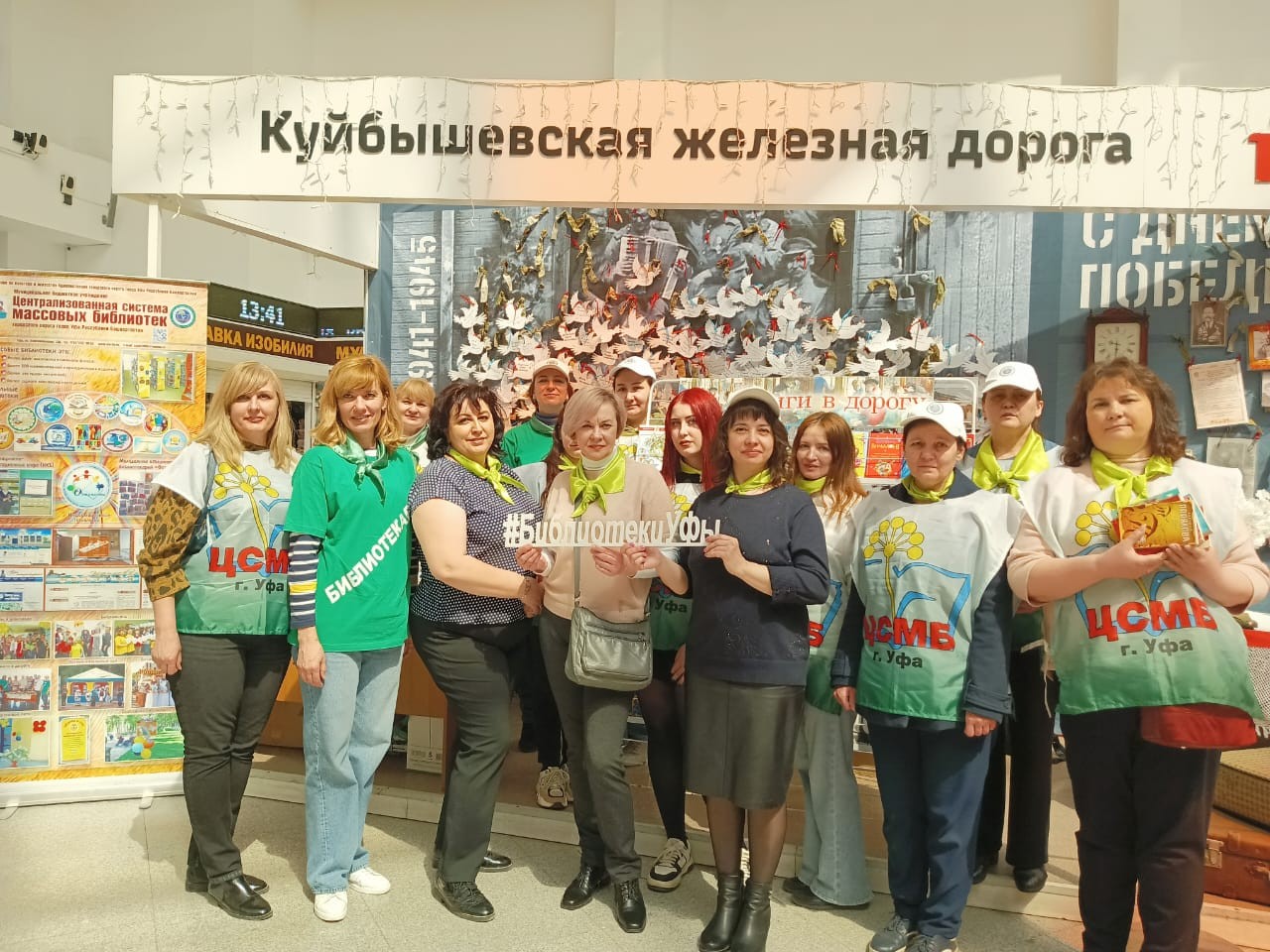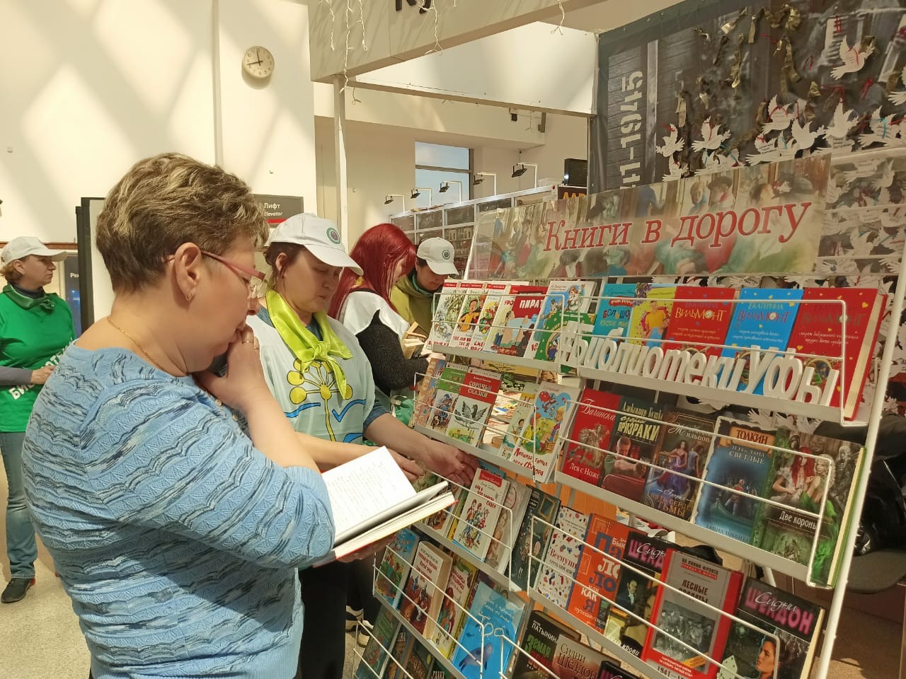 Книжная выставка «Книги в дорогу», специальные яркие элементы одежды сотрудников библиотек, огромное количество книг разных жанров на столах на фоне красочного баннера Централизованной системы массовых библиотек г. Уфы привлекали внимание не только пассажиров вокзала, но и сотрудников различных ведомств.