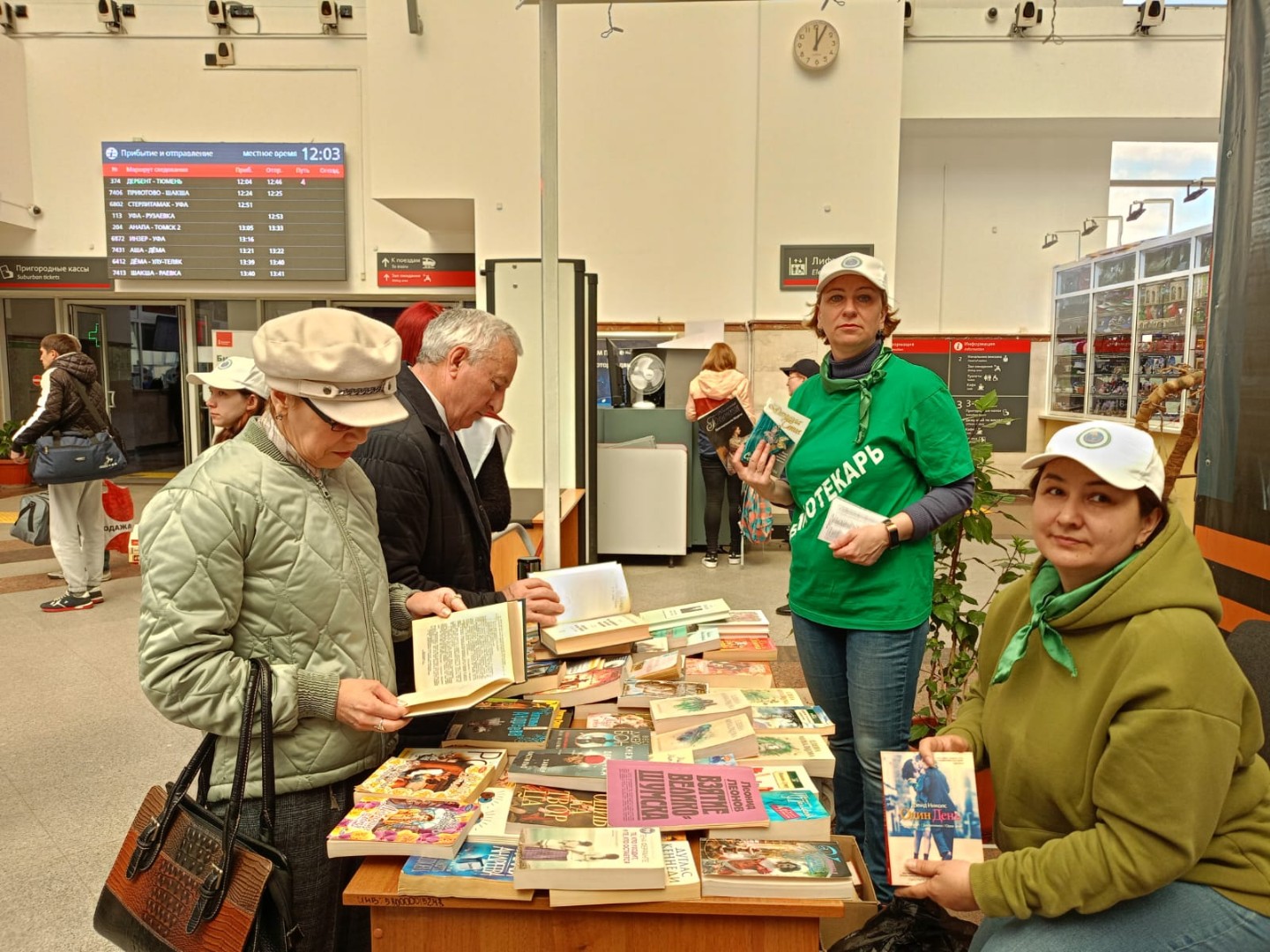 В залах ожидания уфимского Железнодорожного вокзала библиотекари предлагают пассажирам взять с собой сборники произведений небольшого «карманного» формата: юмористические, детективные рассказы, фантастика, любовные романы и другую литературу.